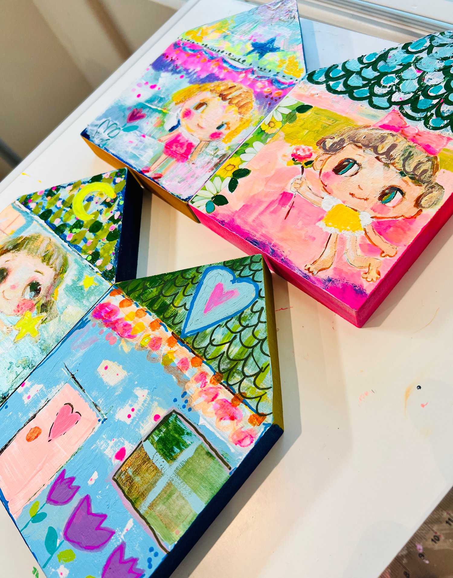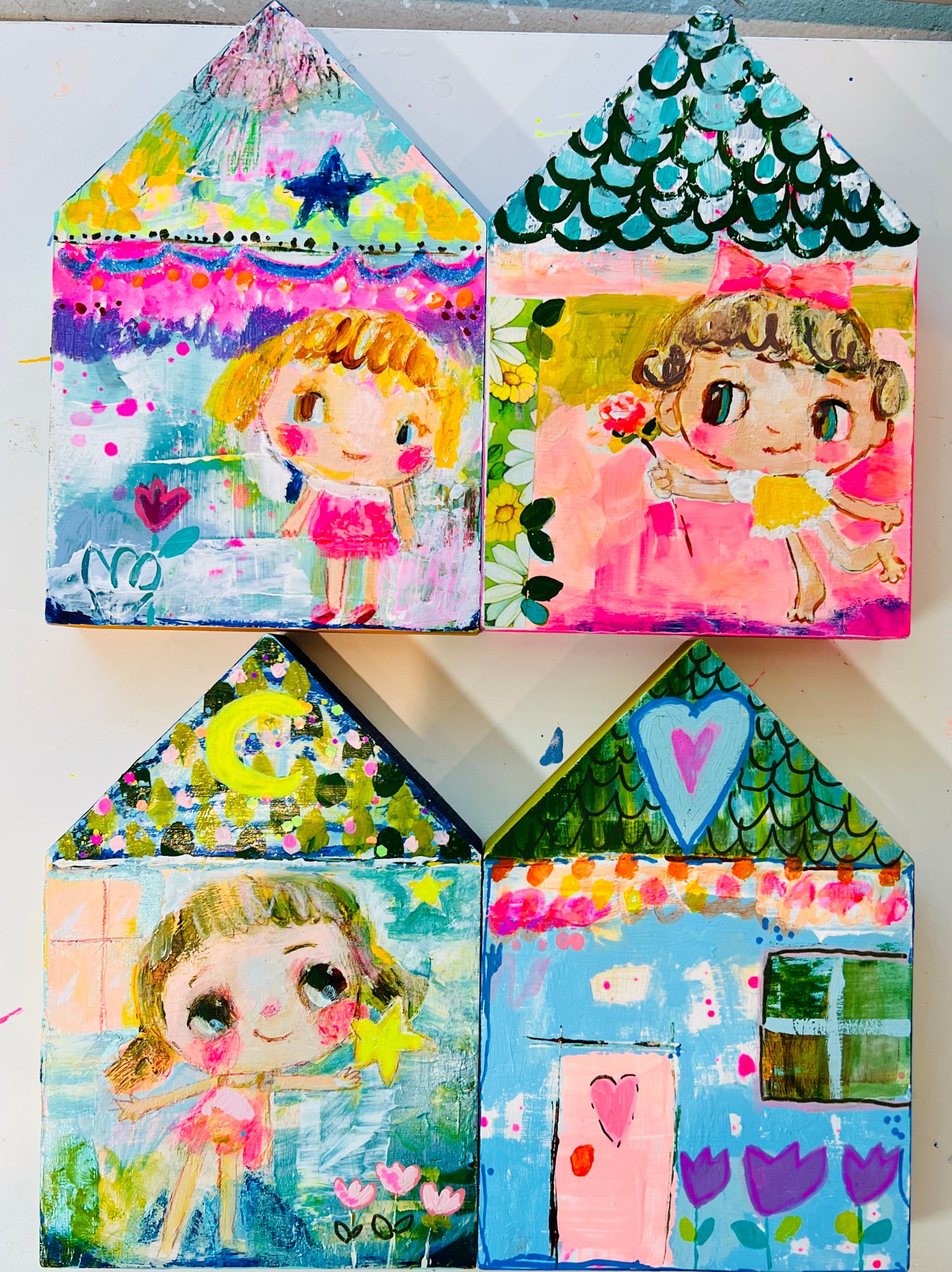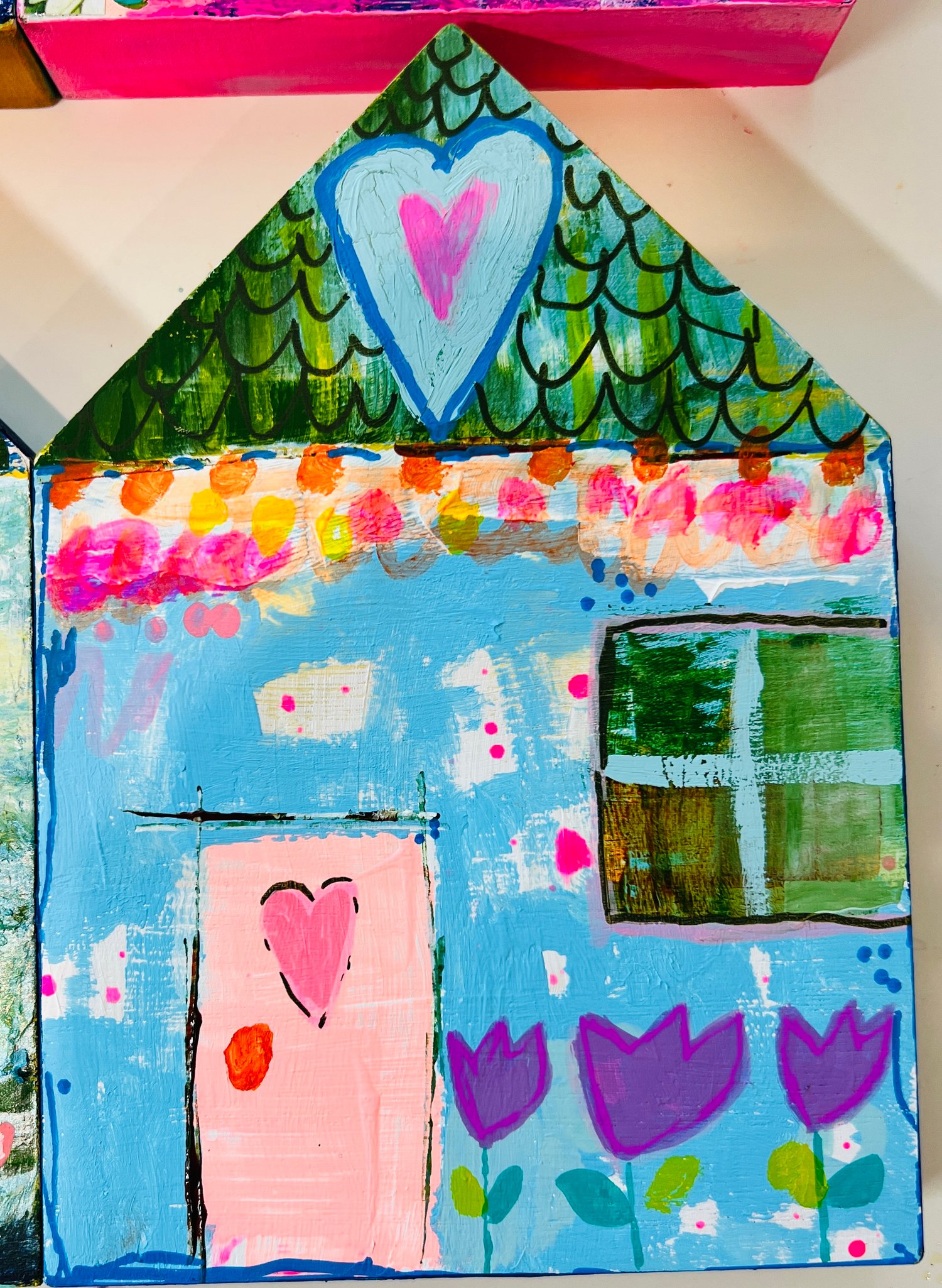 Darling original house hand-painted by me. This sweetie measures around 6" tall