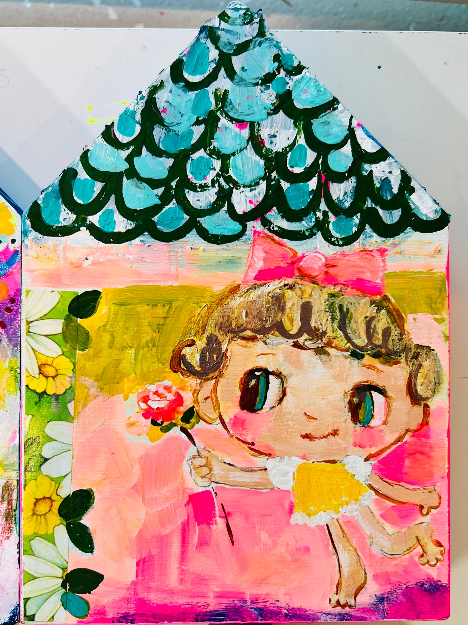 Darling original house hand-painted by me. This sweetie measures around 6" tall