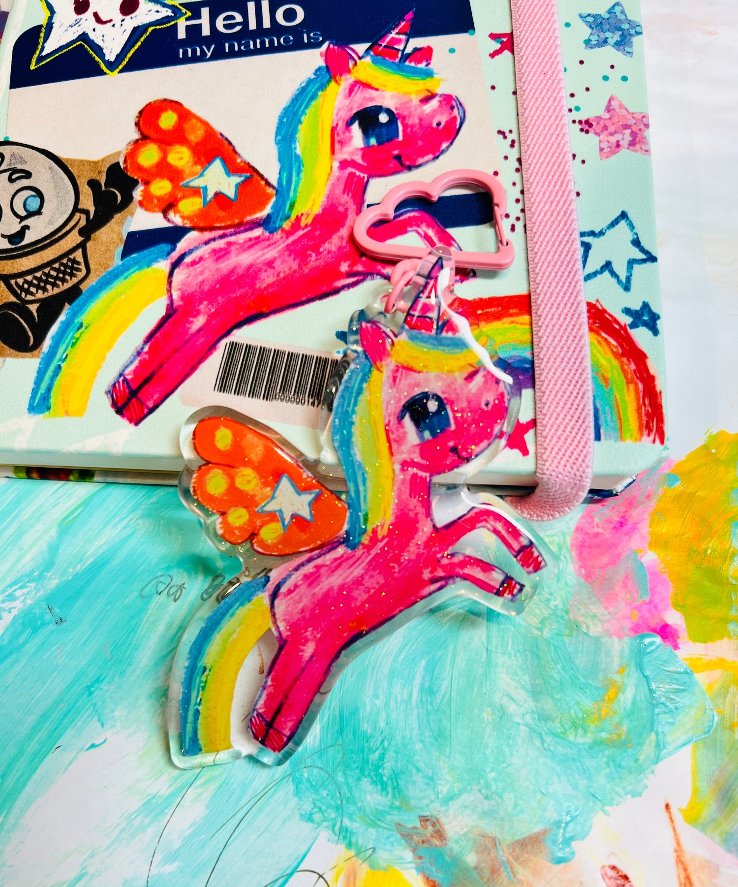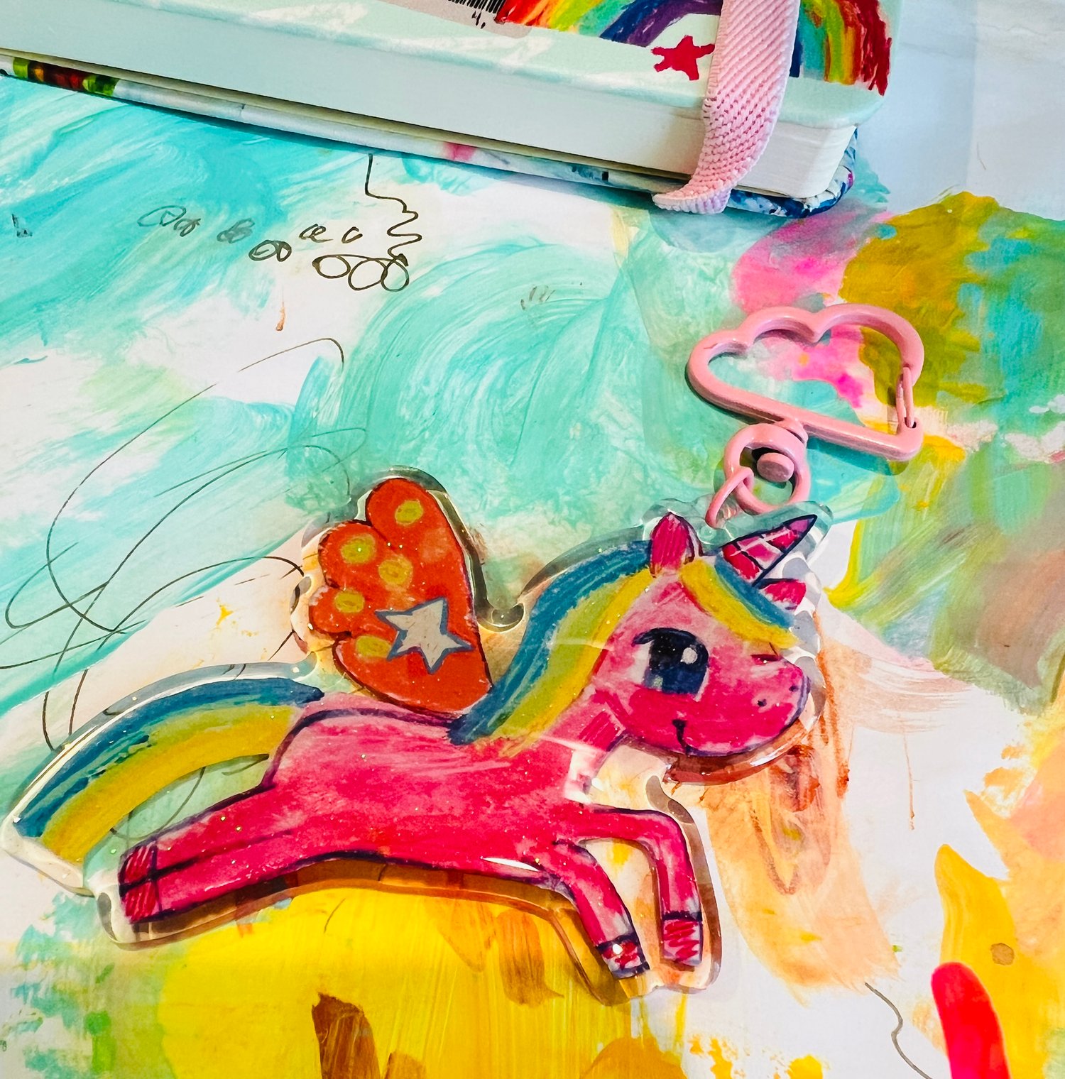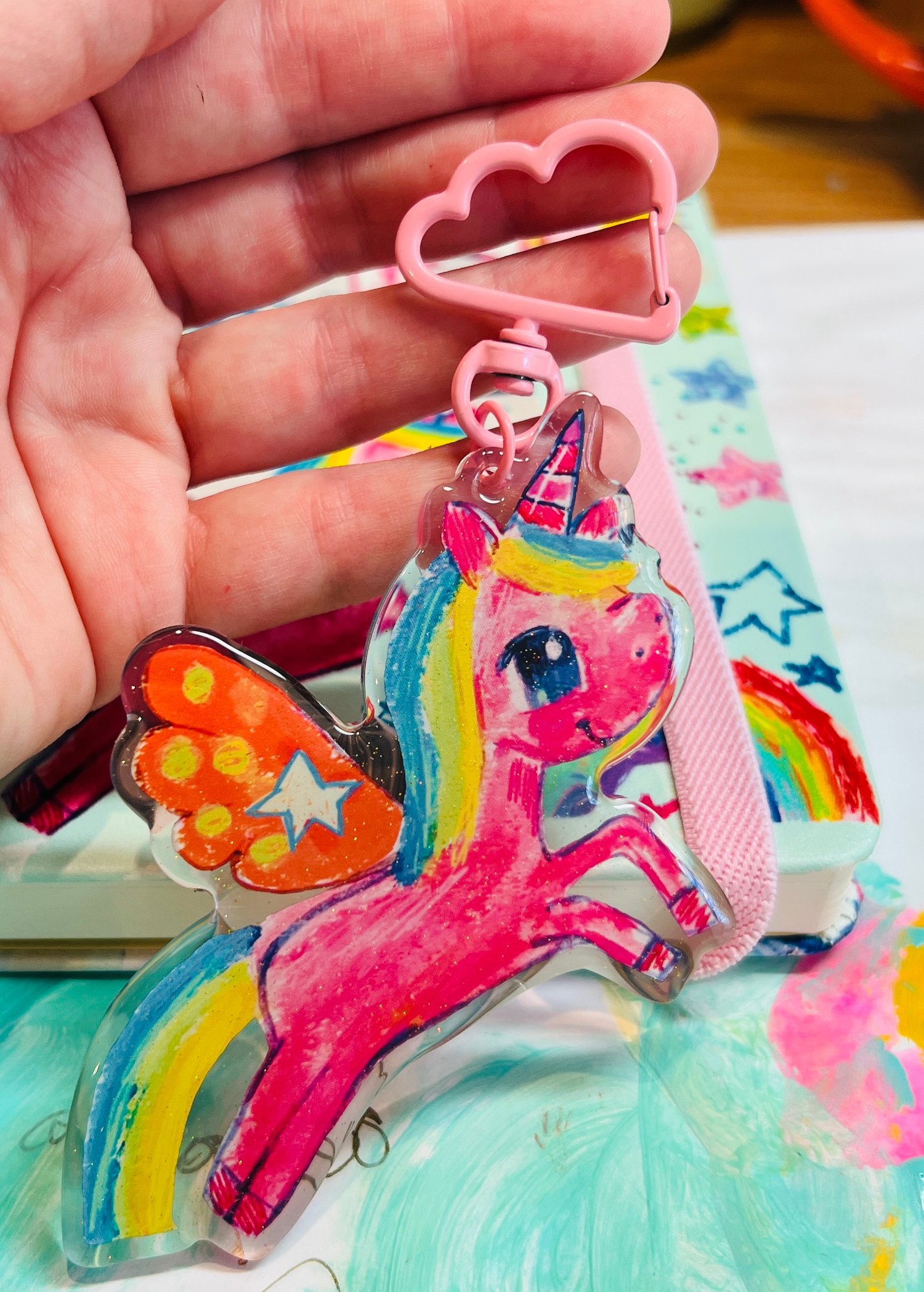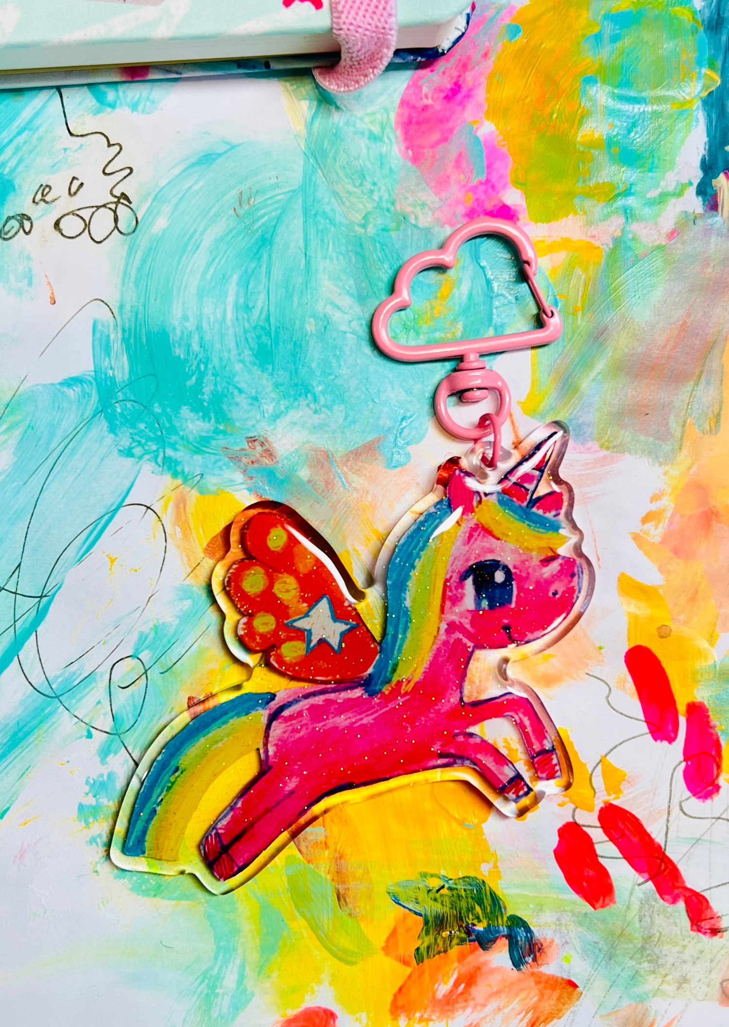 Adorable glitter epoxy charm featuring my cute pink Unicorn illustration.