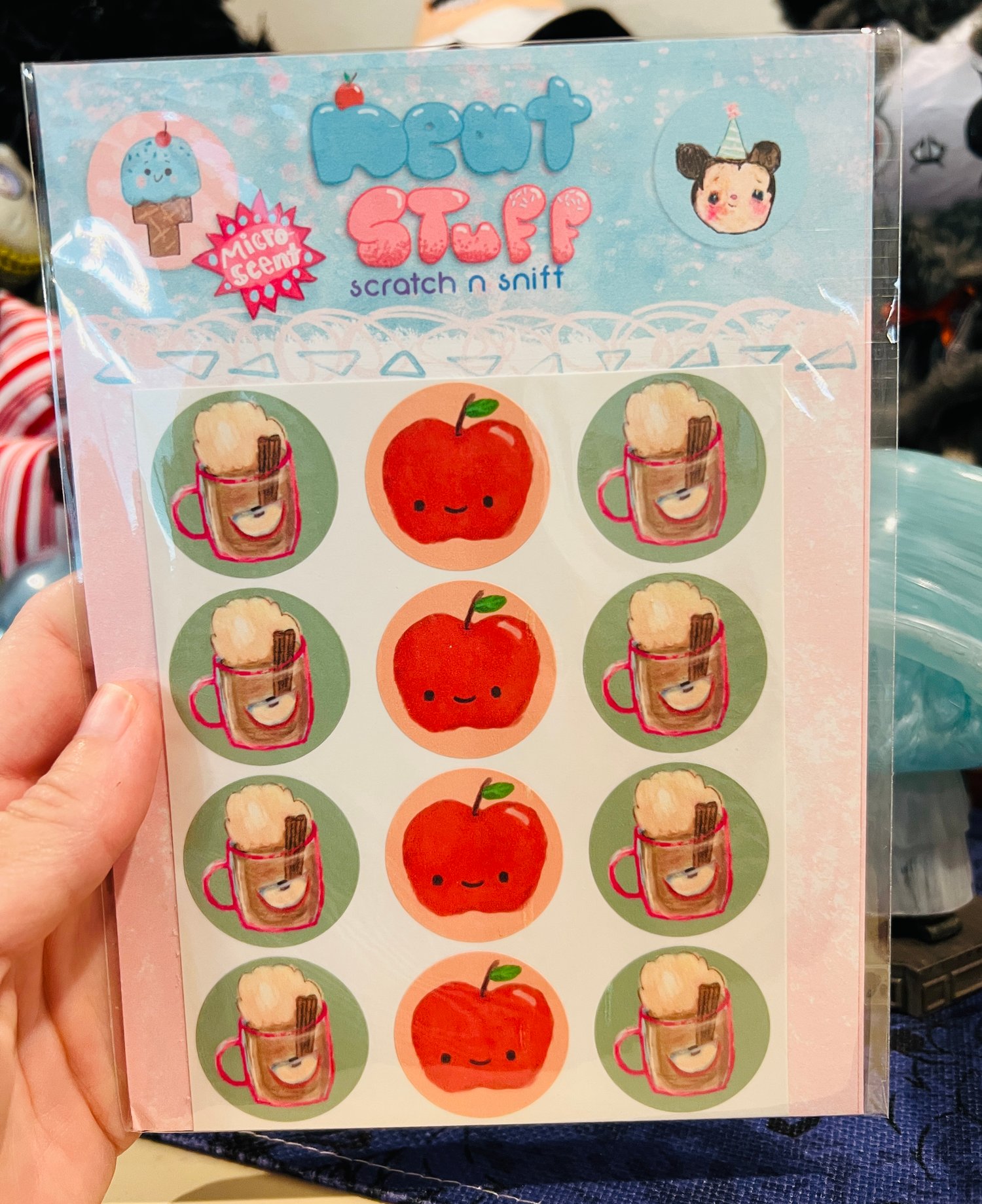 You get 24 1.25" stickers is this pack and they are Spiced Cider micro-encapsulated scent when scratched.