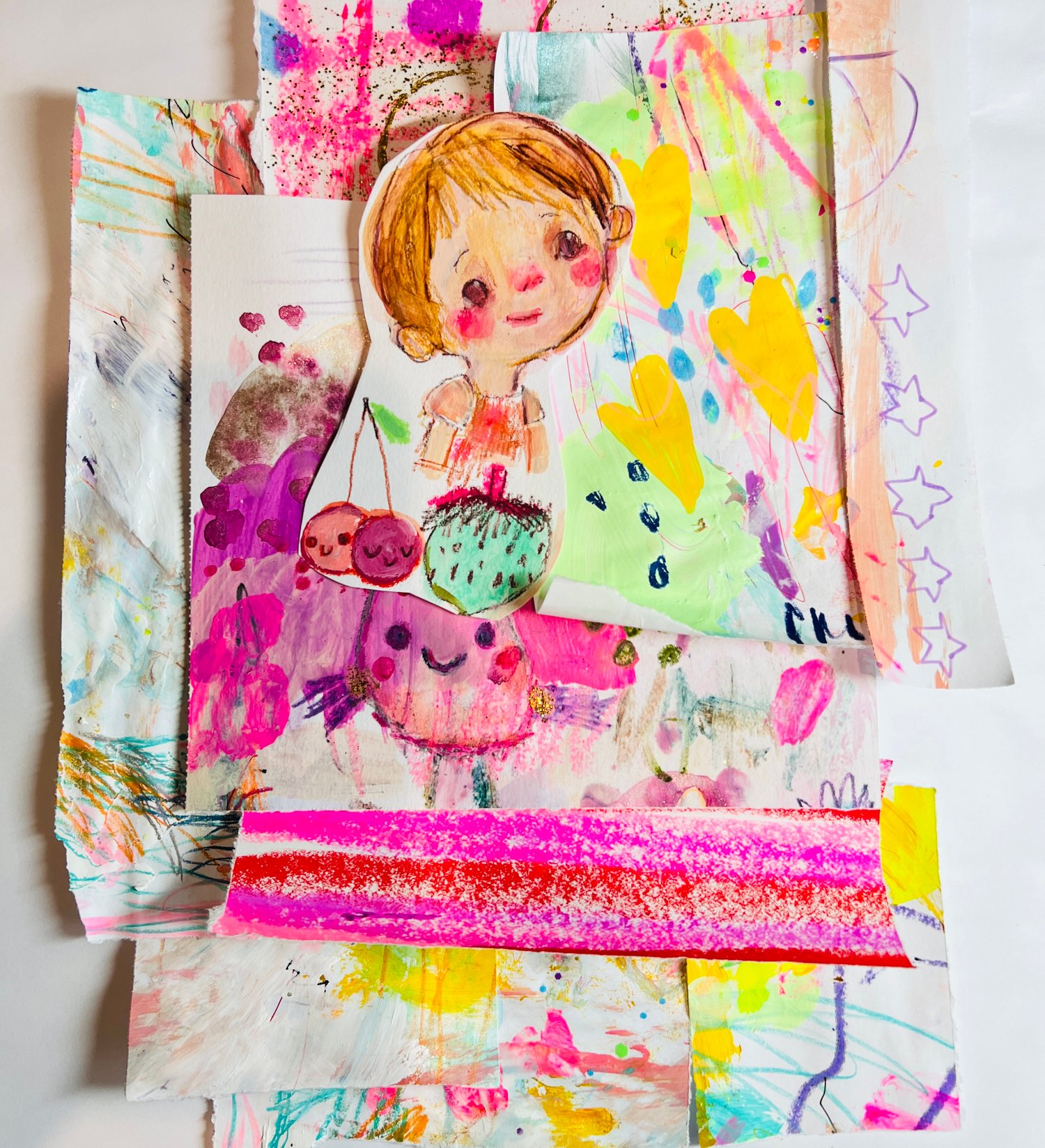 You'll receive 11 hand-painted papers created by me in my studio. This pack also includes one original girl. Girls and papers will vary. There are 3 in stock!